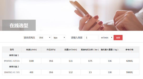 此外,還可以通過風(fēng)機(jī)選型系統(tǒng)查詢回轉(zhuǎn)風(fēng)機(jī)價格,如下圖客戶僅需輸入風(fēng)量、選擇風(fēng)壓,就可以方便、快速、準(zhǔn)確、可靠地進(jìn)行羅茨鼓風(fēng)機(jī)、回轉(zhuǎn)式鼓風(fēng)機(jī)等各類容積式風(fēng)機(jī)的選型和價格查詢工作。風(fēng)機(jī)選型系統(tǒng)地址:http://m.qpabc.com/search.php
